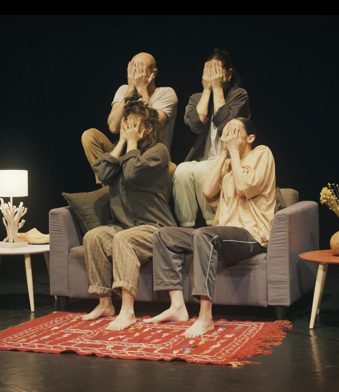 Dans Névroses Banales, la scène devient un espace de vulnérabilité où le rire et l'émotion se mêlent dans une danse collective, révélant nos névroses quotidiennes, entre folie, joie et imperfections.